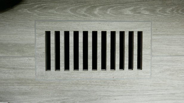 Porcelain tile floor registers create a seamless look. These registers have aluminum glued to the back of the tile, making them sturdier.