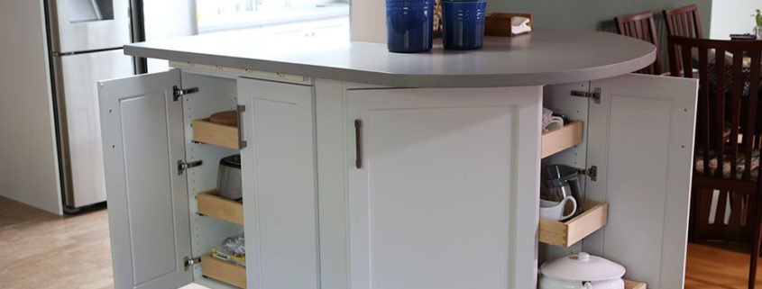 In a remodeling project completed by our company, the original kitchen was woefully lacking in storage. There were no cupboards on the walls and only a few base cabinets among them, several were useless and inaccessible corner cabinets that hid hard-to-reach and, thus, forgotten cookware. Additionally, a center island housed a sink and dishwasher but provided little counter space for the large area it occupied.