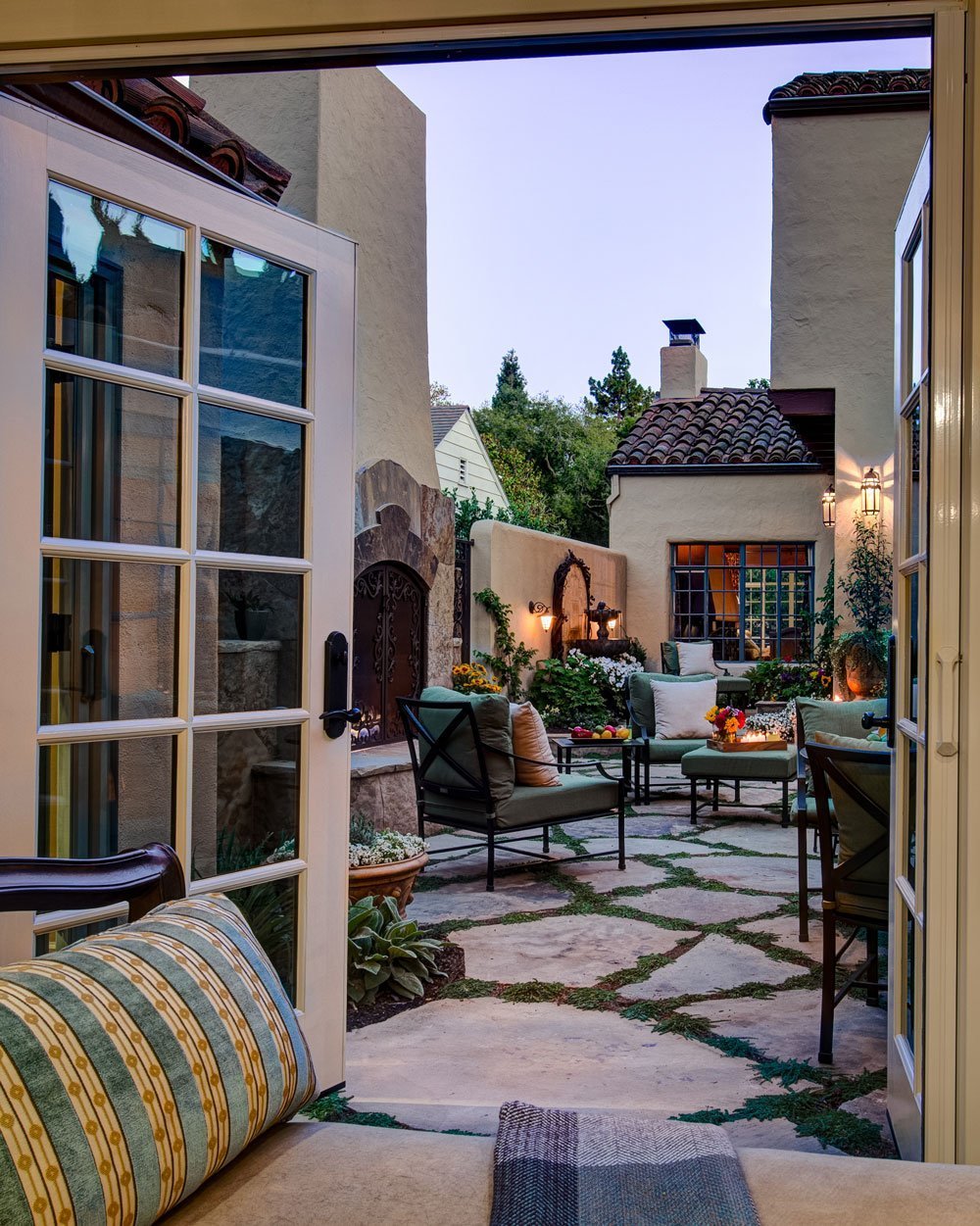 view of outdoor seating area through doors