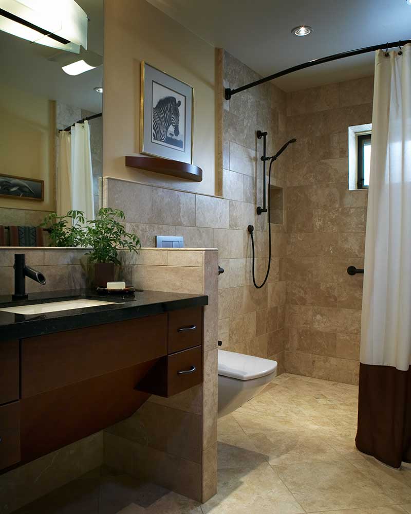 “Universal design is really about how we make homes universally safe, comfortable, and useable for everyone. This could mean Magic Johnson who is seven feet tall and his wife who is five feet tall, and how to address this challenge when designing a kitchen. Or it could be that we have an extended family living in a home and grandma would love to help with the dishes or baking cookies, but she needs to sit down while doing these things and the counter tops are too tall for her. Universal design layouts can also addresses physical challenges like the teenager who broke his foot playing basketball and can’t get up the stairs to the only shower in the house. Or aunt Susie can’t visit because she uses a walker and there are six stairs from the carport to the house. These are real life situations I see on a regular basis,” said Genie.